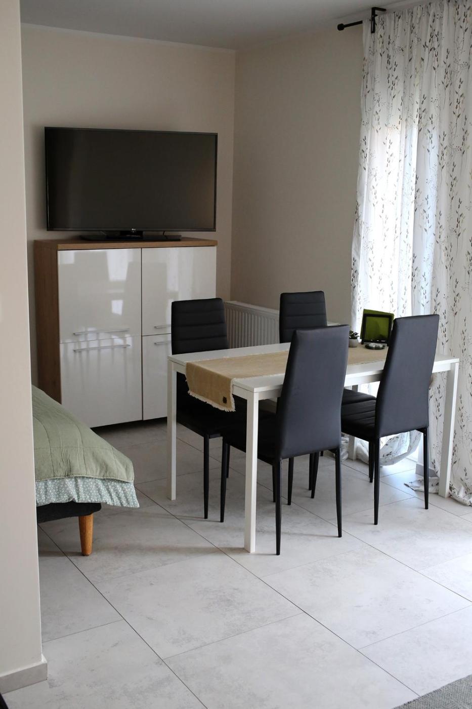 W apartamencie zapewniono sypialnię (1), łazienkę (1), pościel, ręczniki, jadalnię oraz kuchnię z pełnym wyposażeniem. Do dyspozycji Gości jest także telewizor z płaskim ekranem z dostępem do kanałów satelitarnych oraz taras z widokiem na ogród.