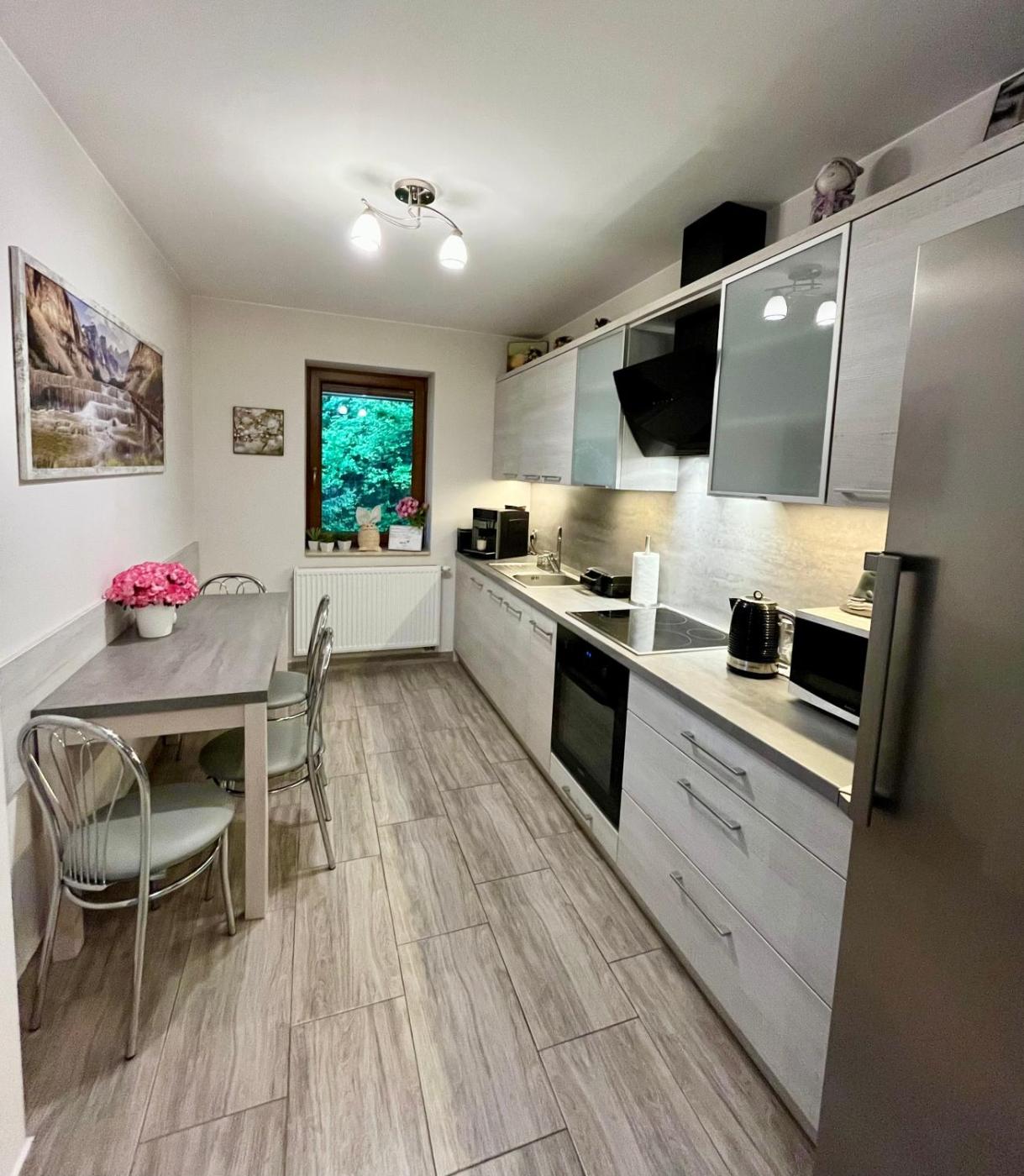 Pokój czteroosobowy z prywatną łazienką. Guests can make meals in the kitchenette that features a stovetop, a refrigerator, kitchenware and a microwave. This quadruple room has a private bathroom, a coffee machine, a dining area as well as a balcony. Pokój Czteroosobowy - 4 osobowy. Powierzchnia pokoju ok.: 28 mkw. ;